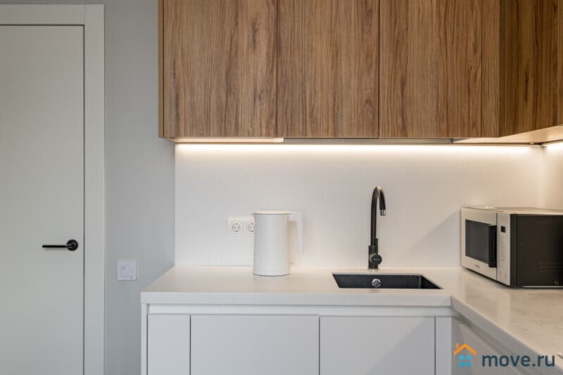 Кухня с варочной панелью, духовым шкафом, микроволновкой, чайником