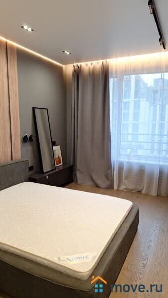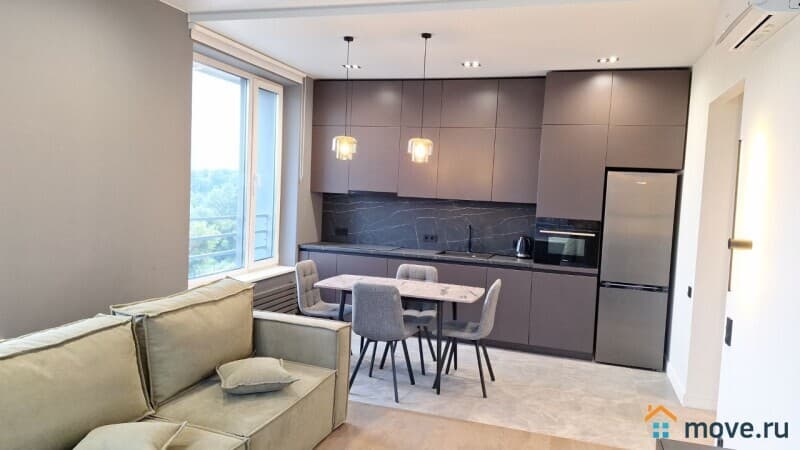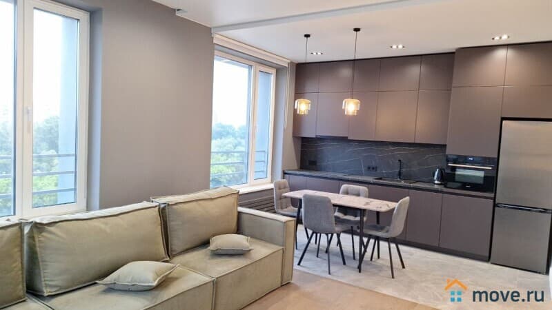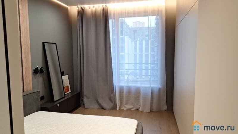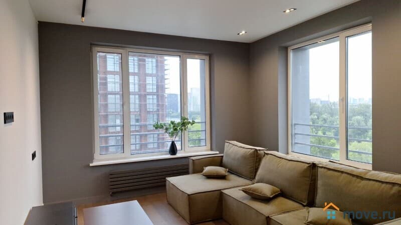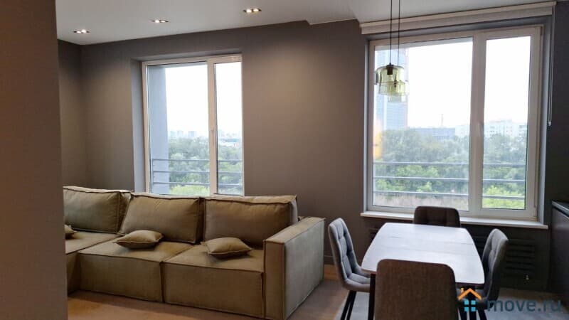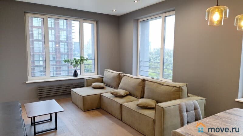 Квартира (евро-2-ка: кухня-гостиная 26 м + 2 спальни по 15 м). 2 с/у. Высокие потолки, панорамные окна. Новый, стильный ремонт. Квартира оснащена всей необходимой техникой, включая посудомоечную машину, кондиционер в каждой комнате. Есть вся необходимая мебель. Одна из спален без мебели, возможно оснащение под арендатора. Сдается на длительный срок, строго без животных.