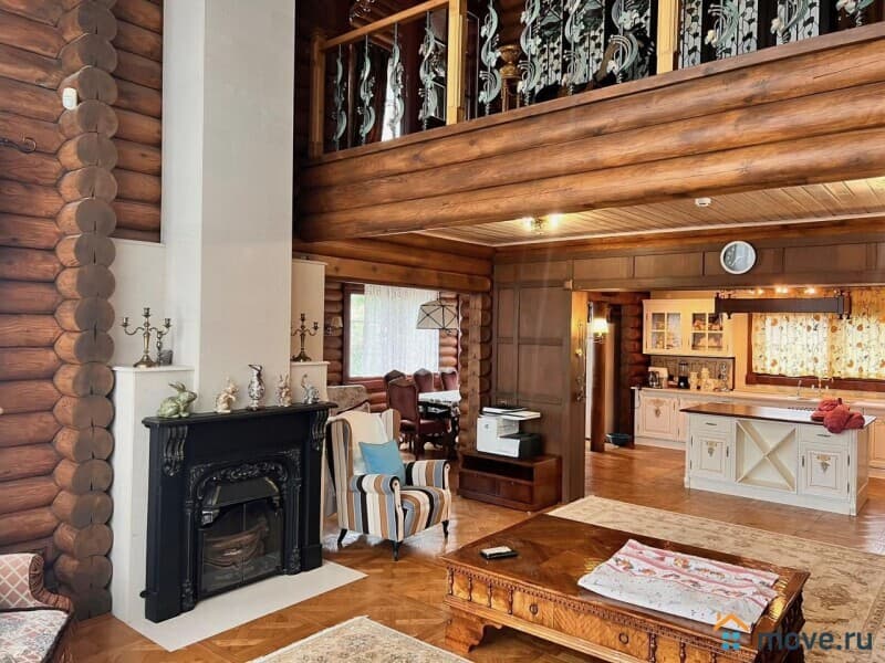 -Пpоcторная гостиная со вторым светом и камином, создающая уют