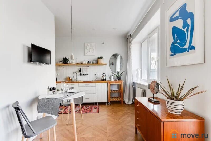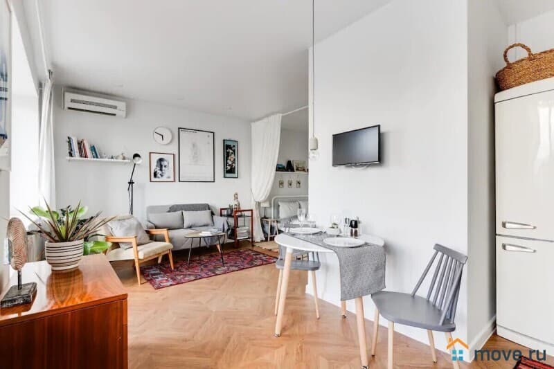 - вся необходимая мебель для проживания: двуспальная кровать, диван (не является спальным местом), места для хранения вещей и обеденная зона