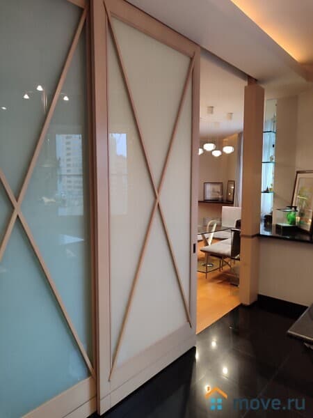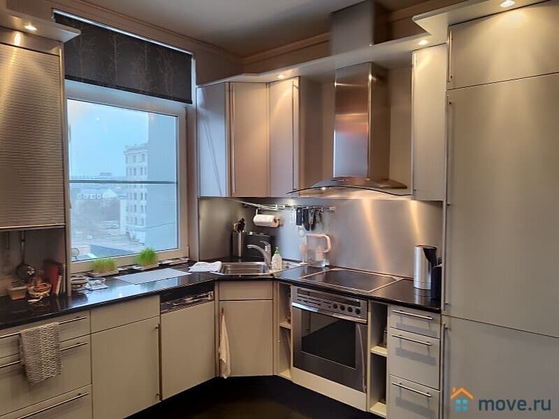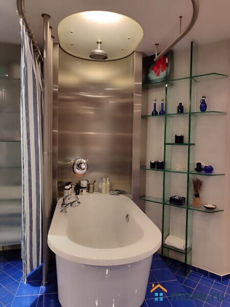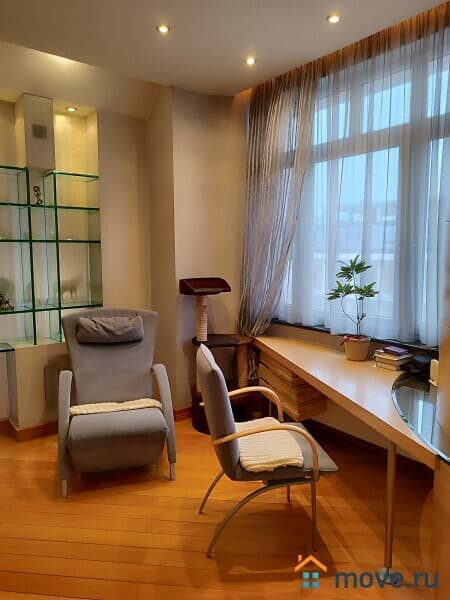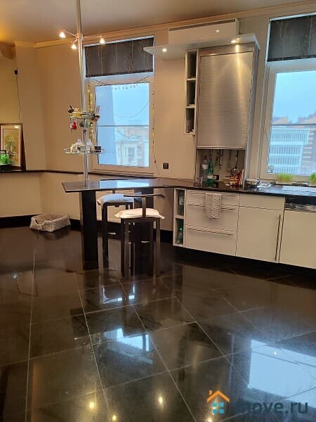 Уникальная квартира в современном малоквартирном доме 1997 года постройки (в доме 15 квартир). Проект, отделка, дизайн, ремонт квартиры, а также изготовление мебели по собственным эскизам на собственном производстве проведены архитектурным бюро «Камень», под руководством его основателя, знаменитого архитектора, Вадима Грекова. В планировке квартиры дизайнеры воплотили идею полукруглой анфилады в стиле хай-тек с элементами трансформинга, без привычного зонирования. В результате получилось единое, наполненное светом пространство, охватывающее кухню-столовую-гостиную-кабинет, которые объединены и одновременно обособлены благодаря изготовленным для этого авторским мебельным модулям. Центральным акцентом квартиры является дровяной круглый камин. В конце анфилады расположена изолированная просторная спальня с большой ванной комнатой, полностью оснащенной техникой, гардеробной комнатой и балконом. В квартире также предусмотрено техническое помещение с помывочной, что в том числе удобно при наличии домашнего питомца. Квартира смотрится очень стильно и неординарно. Она станет идеальным домом для одного человека или пары.