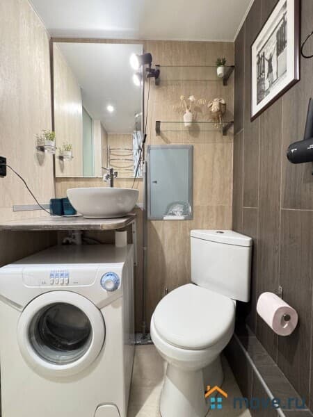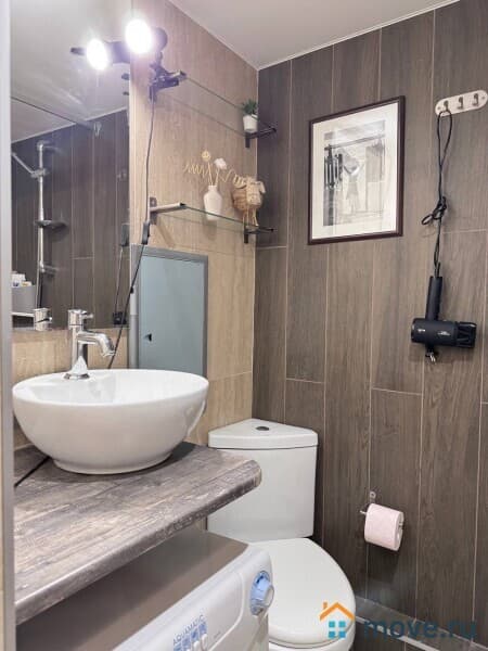 В ванной комнате Вас ждёт полный комплект средств гигиены (шампунь, гель, мыло, бумага). Для Вашего комфорта мы подготовили фен. Также в квартире есть стиральная машина.