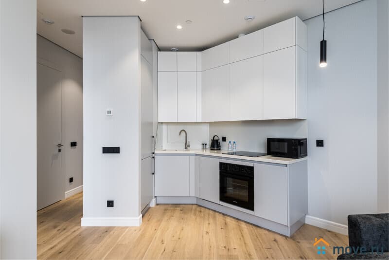 Установлен кондиционер, есть стиральная машина, посудомойка и духовой шкаф.