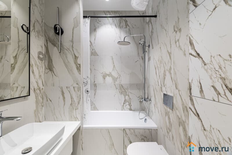 Новый современный ремонт: светлая кухня с встроенной техникой, уютная спальня с большой кроватью и свежим матрасом, стильная ванная комната с отделкой под мрамор. Всё сделано с любовью к деталям!
