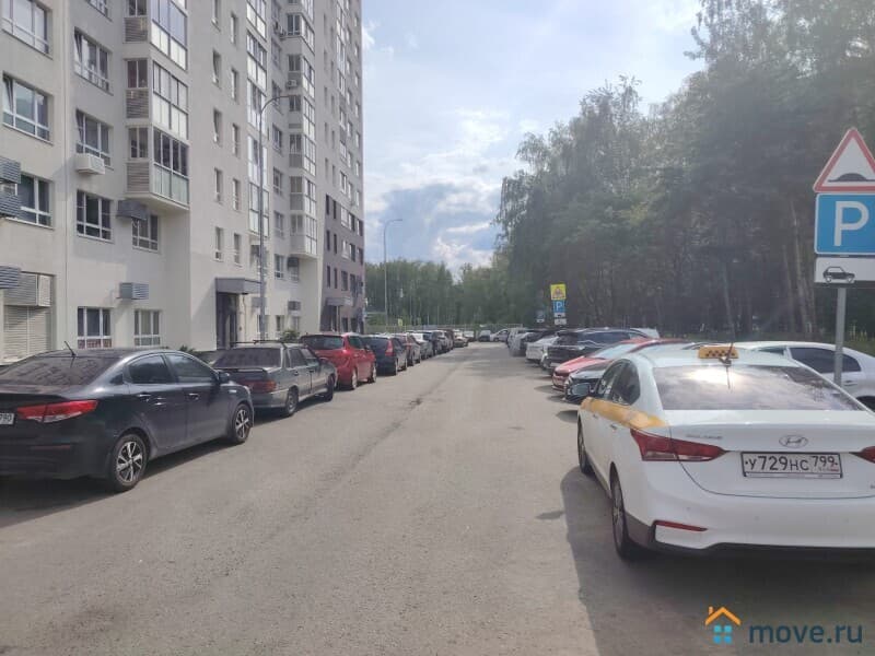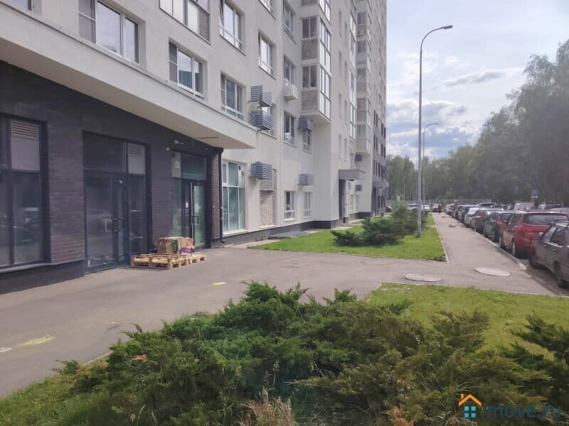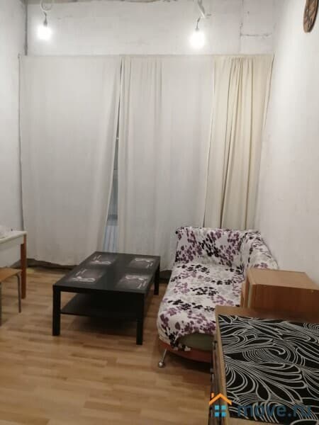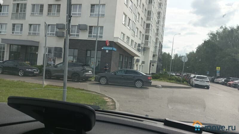 Квартира находится на первом этаже, потолок 4 метра, 2 больших окна выходят на проезд и парковку, окна выходят на обе стороны на березовую рощу и во двор.