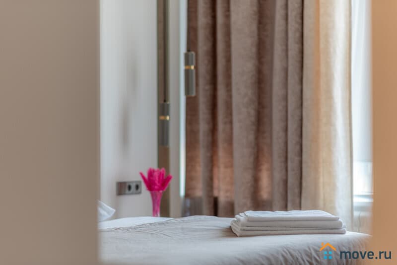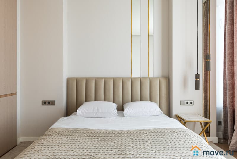 Большая спальня с мягкой кроватью — для комфортного сна и отдыха после насыщенного дня в Москве. Нежные оттенки, плотные шторы, уют — заходишь и сразу хочется остаться.