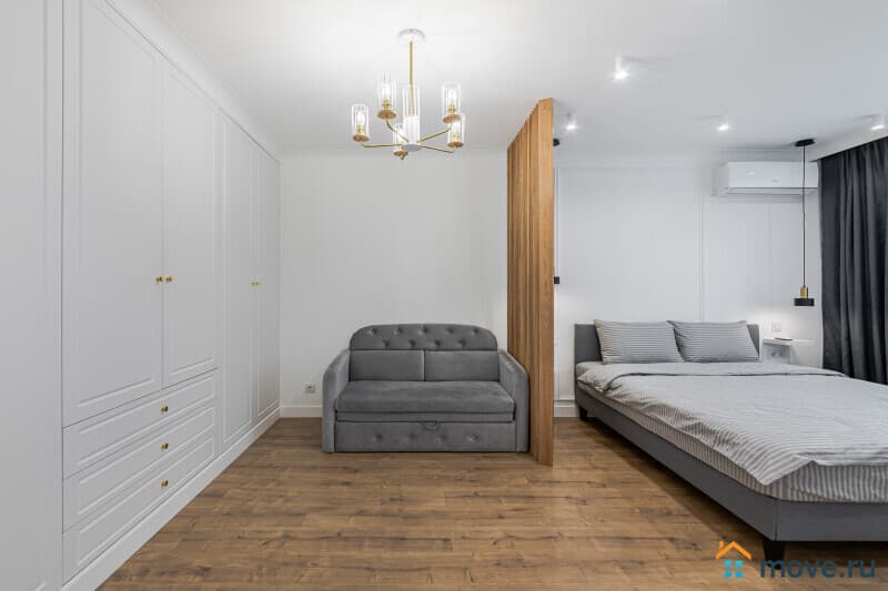 - вся необходимая мебель для проживания: 3х гостей - комфортная двуспальная кровать размера king-size, раскладной диван (подходит только для 1 гостя)