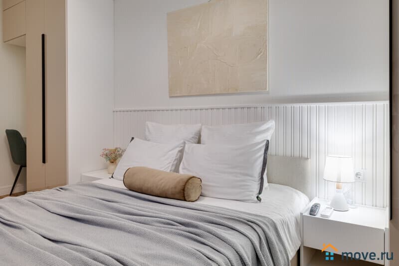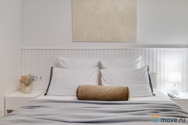 Просторная двуспальная кровать с ортопедическим матрасом с мягким постельным бельем 1-2 гостей.