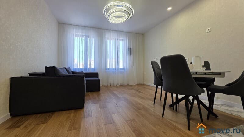 Квартира очень теплая, уютная, потрясающие видовые характеристики, расположена в центре дома. Выполнен качественный, дорогой ремонт, смонтирован бризер, видео домофон, в с/узле защита от протечек, сантехника и санфаянс импортного производства. В гостинной установлен угловой диван, в кухонной зоне раздвижной стол и 4-е мягких стула.