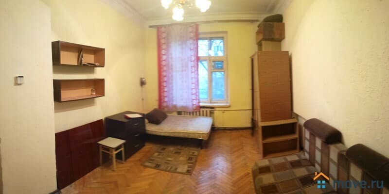 Комната в 4 комнатной квартире. Комната самая большая 18.7м.кв. Окно выходит в тихий переулок. В красивом сталинском фасадном доме на 2м этаже. Хорошие отношения с соседями. Места общего пользования в приличном состоянии.