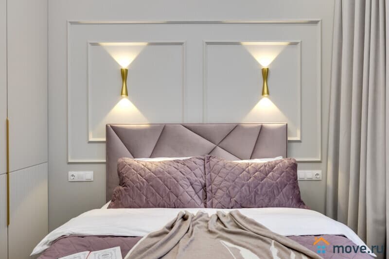 Гарантия отличного сна: уютная спальня с двуспальной кроватью 160x200 см с ортопедическим матрацем и шторами blackout для полного затемнения. В гостиной — удобный раскладной диван.