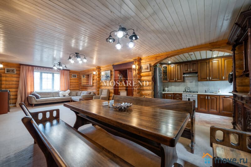 -на 1 этаже: кухня, гостиная с раскладывающимся диваном, столовая