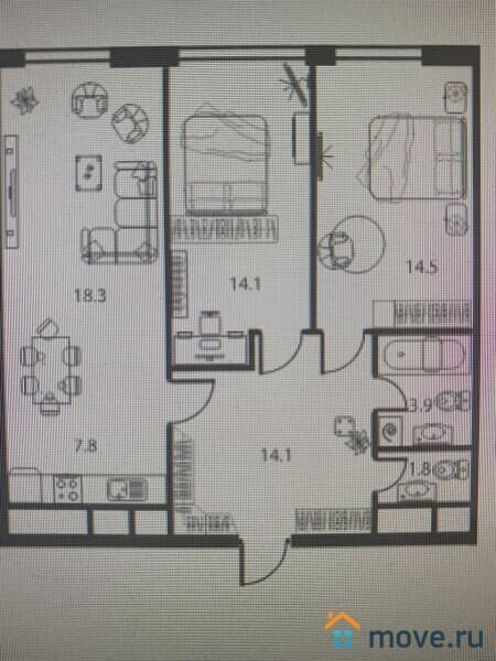 Просторные апартаменты площадью 75 кв.м с премиальным ремонтом и полной меблировкой. Идеальное решение для тех, кто ценит комфорт и статус. Жилая площадь – 46,9 кв.м. Кухня (7,8 кв.м) объединена с гостиной (18,3 кв.м), 2 отдельные комнаты – 14,5 и 14,1 кв.м. Раздельный санузел. Премиальная отделка: итальянские межкомнатные двери, дизайнерская кухня, немецкая сантехника, система климат-контроля.