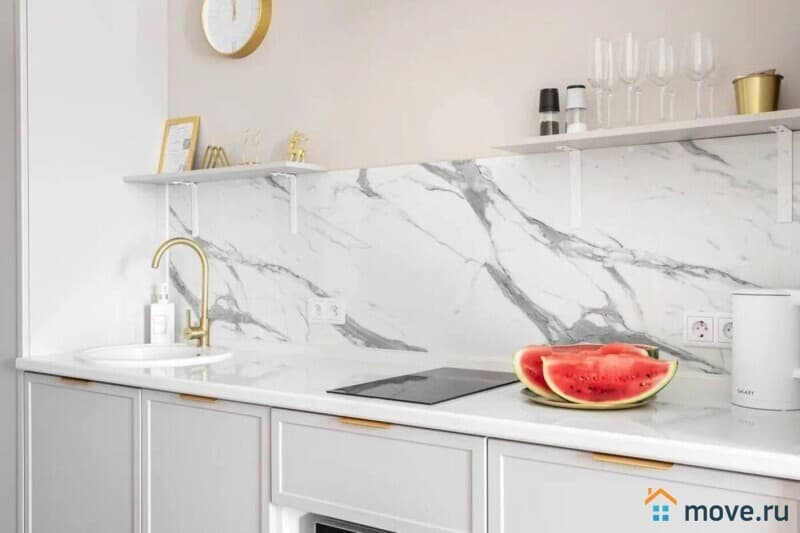• Полное оснащение: В квартире есть вся необходимая современная техника: стиральная машина, кондиционер, телевизор, микроволновка, фен и пылесос.