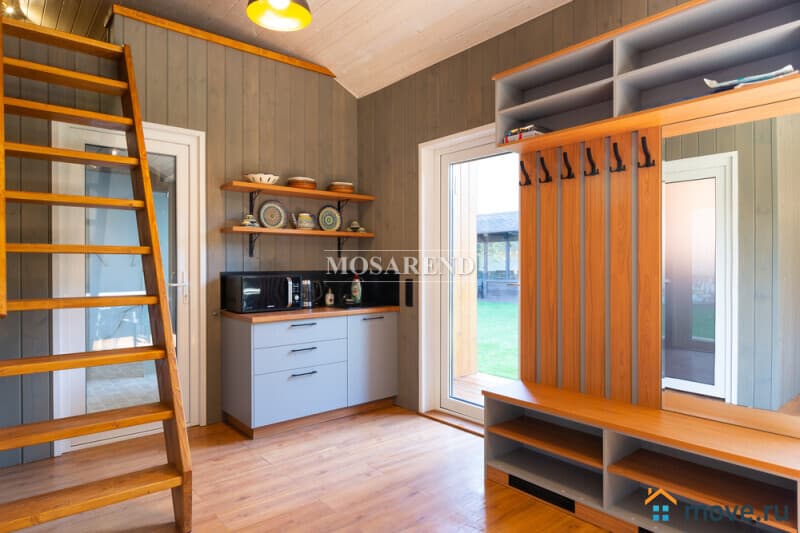 -1 этаж: большая прихожая, переходящая в кухню-столовую, гостиную и спальню, где имеется всё необходимое кухонное оборудование, банкетная посуда и текстиль