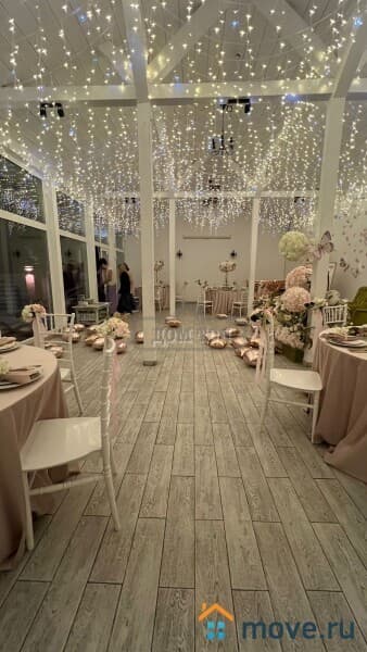 Белоснежная веранда – банкетный зал 80 кв.м. на 40 персон. Банный домик 85 кв.м. с уличной подогреваемой купелью. Парковка. Стильные качели для фотосессии, мангальная зона. Очаровательный яблоневый сад. Белый пирс с лодочкой.