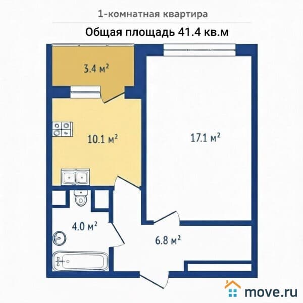 Лот: 69377. 1-комнатная квартира 41,4 м? | 10 мин пешком до метро | свободная продажа