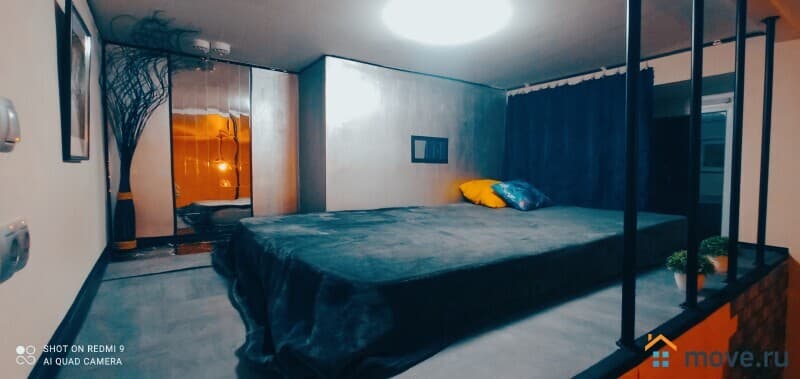 Высококачественная дизайнерская отделка, сантехника и мебель. Двуспальный матрас 130х195 на 2 этаже, раскладной двуспальный диван внизу. Удобный вместительный шкаф, на кухне холодильник, микроволновка, электроплита, чайник и прочее.