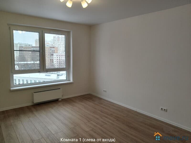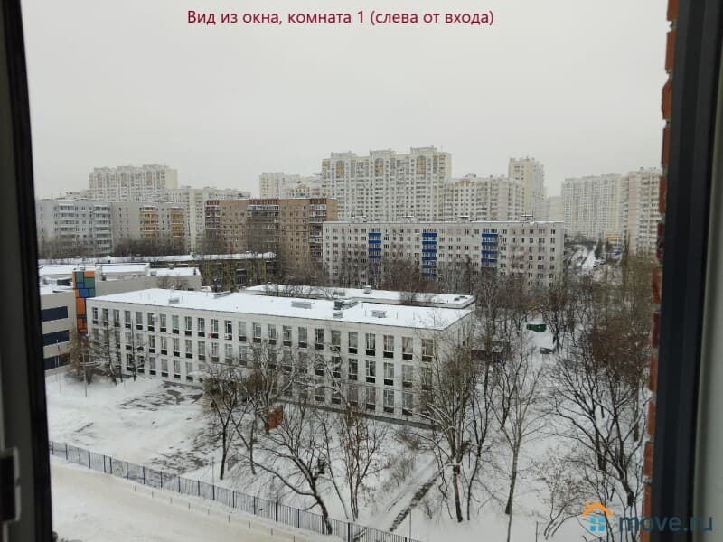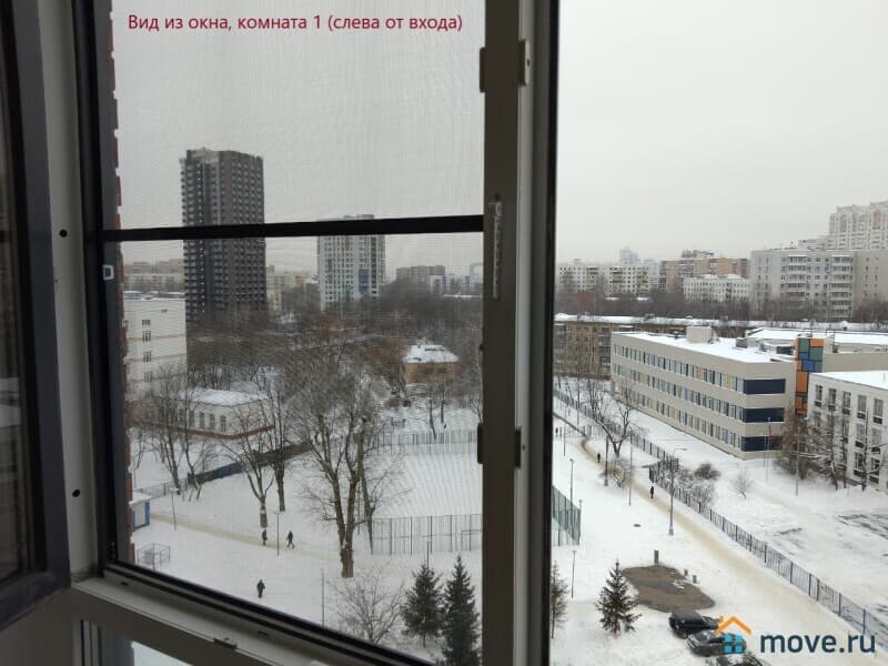 Окна комнаты слева выходят на запад (школа, спортивная площадка; 180 метров до подлежащей сносу 5-этажки - на её месте планируется спортивная площадка и озеленение).