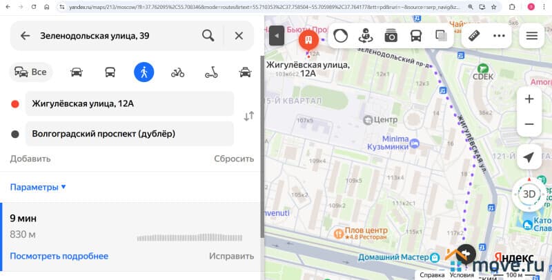 До метро 9 минут пешком (по Яндекс-картам).