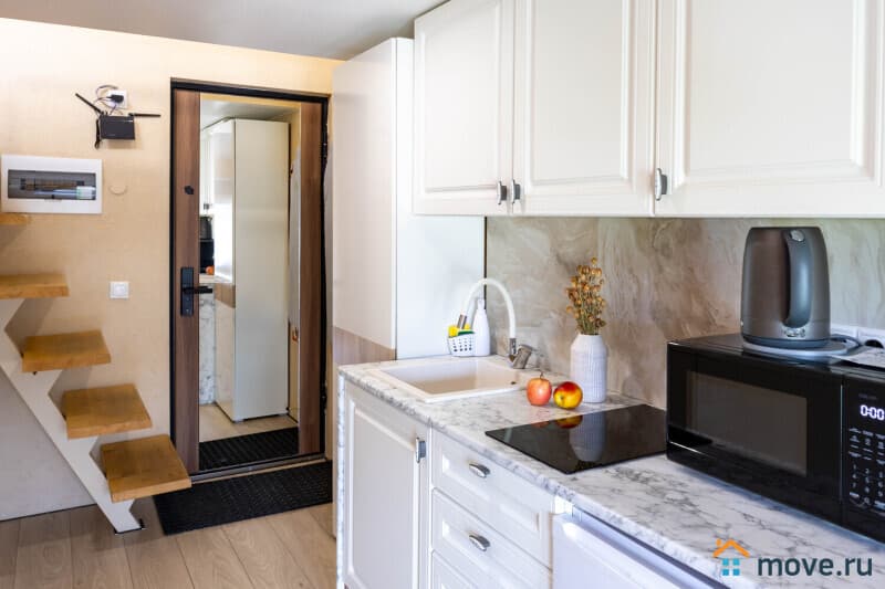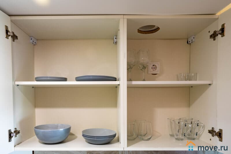 - удобная обеденная и кухонная зона с набором посуды, плитой, микроволновой печью