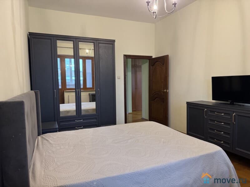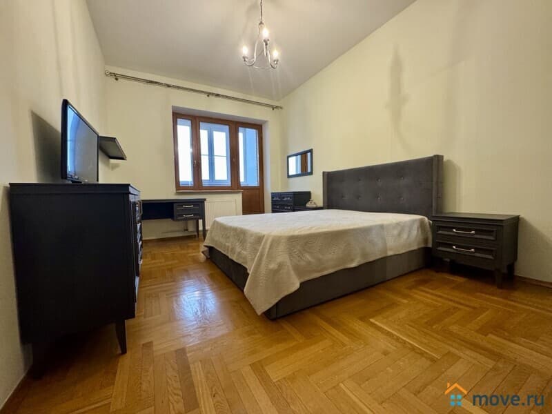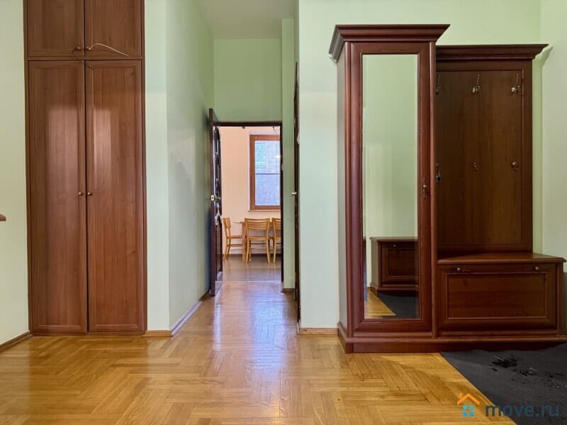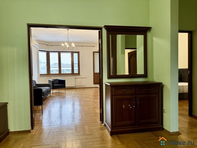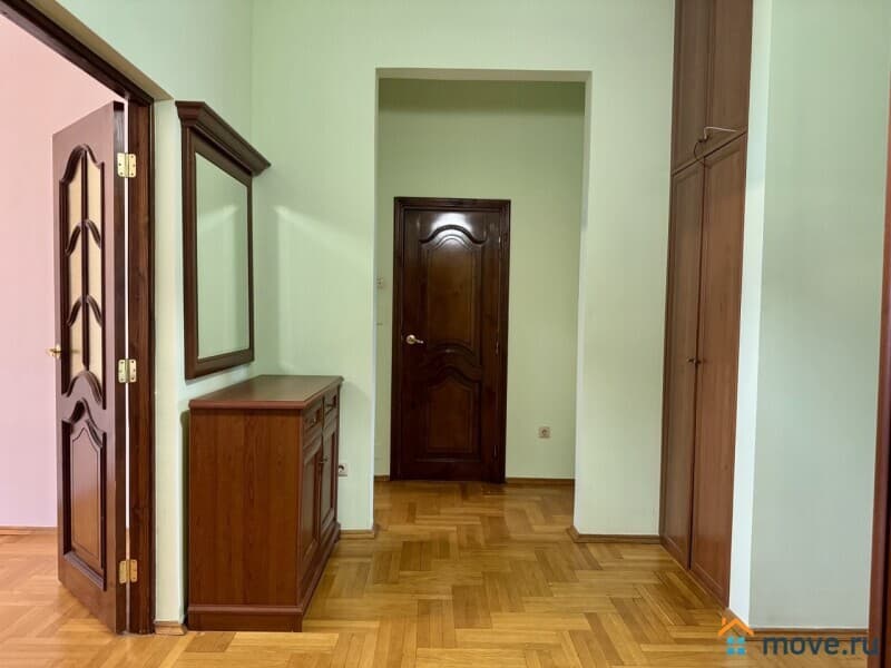 Особое внимание уделено отделке: полы во всех комнатах выполнены из паркета, а коридор, санузлы и балконы — плитка. Стены ровные и аккуратно покрашены, создавая ощущение чистоты и простора. Толстые внешние и межквартирные стены гарантируют тепло зимой и тишину круглый год, обеспечивая превосходную шумоизоляцию. А высота потолков в 3,1 метра добавляет квартире ощущение воздушности и роскоши. Из окон открывается приятный вид во двор. Два санузла.