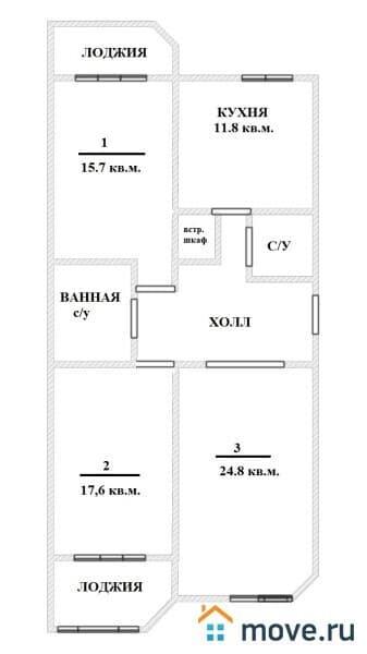 Квартира находится в отличном состоянии и готова к проживанию. Три уютные комнаты площадью 24,8 кв.м., 17,6 кв.м. и 15,7 кв.м. подарят каждому члену семьи личное пространство. Просторная кухня площадью 11,8 кв.м. оборудована современной встроенной мебелью.