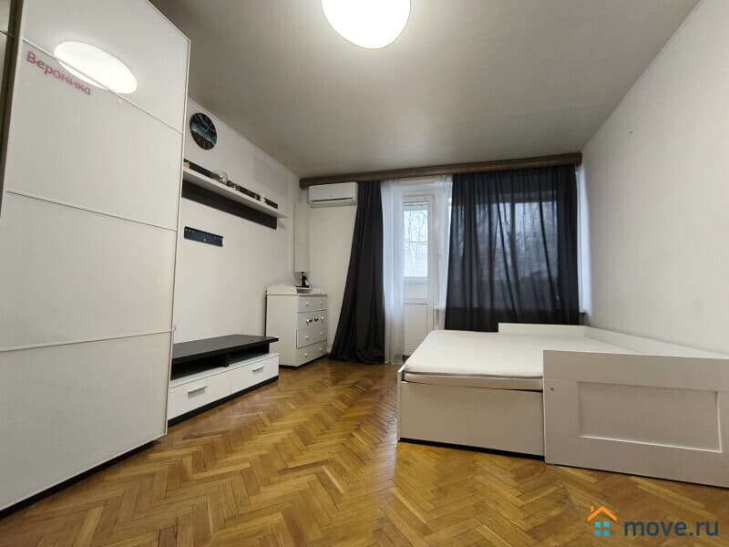 Общая площадь без учета лоджии 34.2м, с учетом - 40.2м, большая застекленная лоджия 6м. комната 19м, кухня просторная 10м. Лишняя мебель увезется, останется только встроенная кухня. Несущие стены по периметру квартиры. Во всех окнах стеклопакеты.