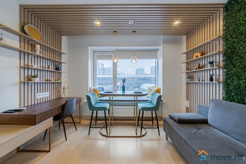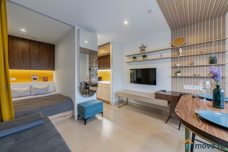 - вся необходимая мебель для проживания: 4 спальных места: двуспальная кровать и раскладывающийся диван; места для хранения вещей и обеденная зона