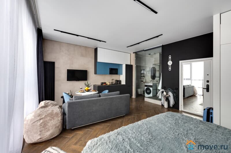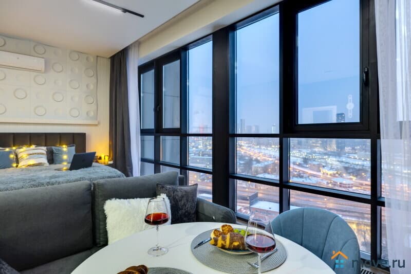 Добро пожаловать в вашу городскую гавань бизнес-класса — студию «Олимп» от HOME24. Здесь панорамные окна от пола до потолка открывают головокружительный вид на Москва-Сити, а каждая деталь интерьера, продуманная дизайнерами, создает атмосферу гармонии для тех, кто ценит качество во всем.