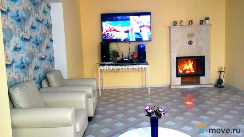 -1 этаж: кухня с большим обеденным столом на 16 человек, посудой и необходимым оборудованием, кают-компания с суперсовременным караоке на 40 000 песен, TV и настоящим камином, проектор 3х6 м, спальня, общий туалет и ванная комната с джакузи