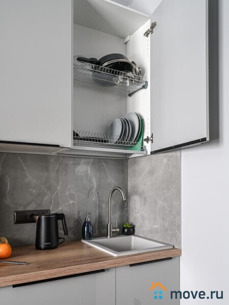 - удобная обеденная и кухонная зона с набором посуды, плитой, микроволновой печью