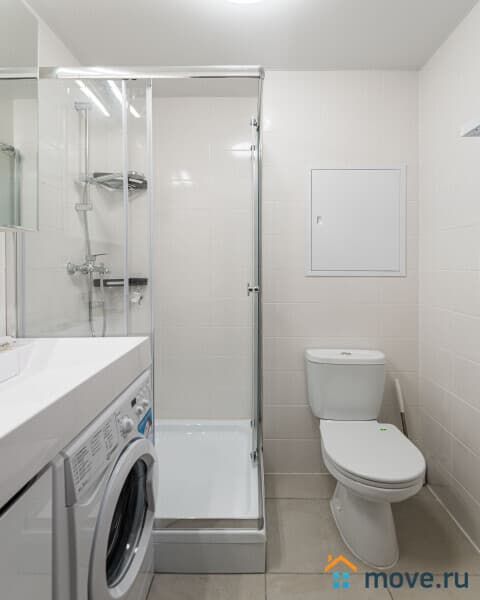 В распоряжении гостей — продуманная система хранения: гардеробная и вместительные шкафы. Аккуратная ванная комната оснащена душевой кабиной, стиральной машиной и всеми необходимыми удобствами.