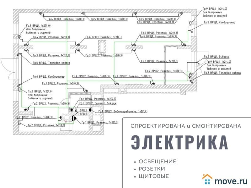 - установили эл.щиты и развели электрику: светильники, розетки, питание для оконных и наружной вывесок, гирлянд, тепловых завес и кондиционеров