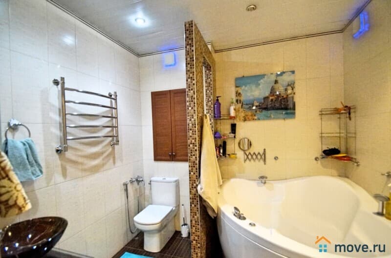 С хорошим качественным ремонтом для себя. Есть все необходимое для проживания: 2 х спальная кровать, диван, большой 2 створчатый холодильник, посудомоечная машина, газовая плита, СВЧ печь, духовой шкаф, кухонный гарнитур, 3 кондиционера, стиральная машина, электро камин, шкафы для вещей, тумбочки, стулья, телевизор. С/у объединен с большой угловой ванной. 2 -балкона застекленных.