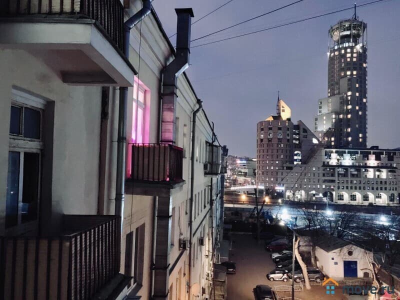 Квартира расположена на 5 этаже в доме сталинского ампира. Это центр Москвы с характерной архитектурой и исторической атмосферой.