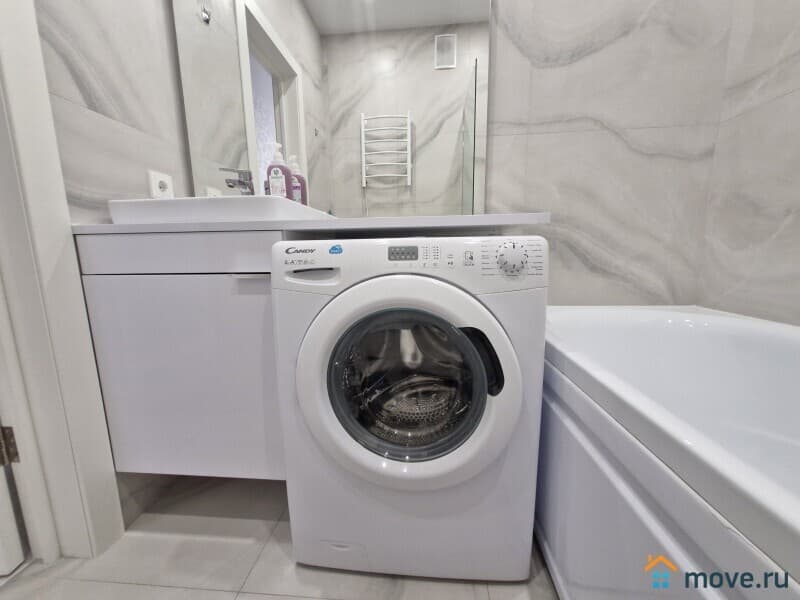 В апартаментах есть все необходимое для проживания 2 человек: двуспальный диван с ортопедическим матрацем, постельные принадлежности, посуда, микроволновка, посудомоечная машина, кондиционер, большой холодильник, плита, посуда, чайник, тапочки. В ванной есть стиральная машина, туалетные принадлежности, полотенца. Большие зеркала в полный рост.