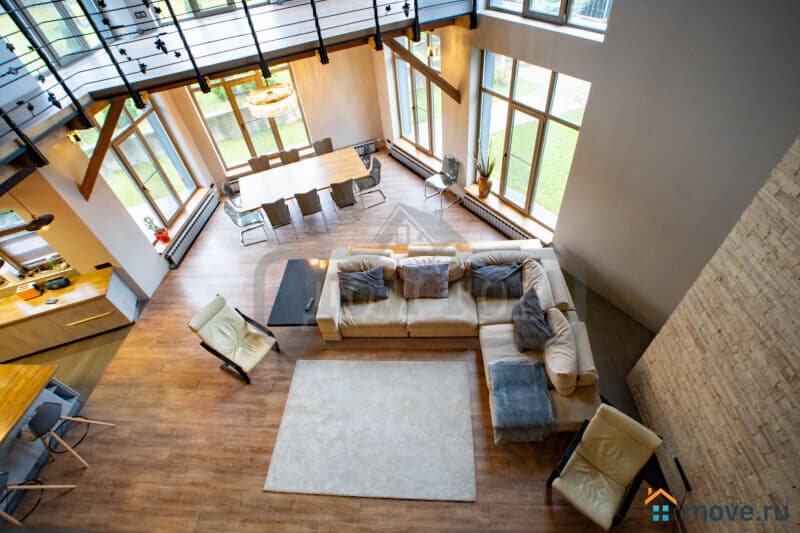 В ДОМЕ: 3 этажа, 450 кв.м., 5 спален, 10 комфортных спальных мест. Просторная терраса со скамейками. Холл с большим диваном. Гостиная 120 кв.м. на 50 персон с вторым светом и панорамными окнами, высота потолков 8 м. Обеденная зона с диваном и столом на 15 персон. Кухня-островок с необходимой посудой и техникой. Спальня. Сауна с подсветкой на 10 персон, обливное ведро. На втором этаже 3 спальни, терраса с диваном, холл с пространством для работы.