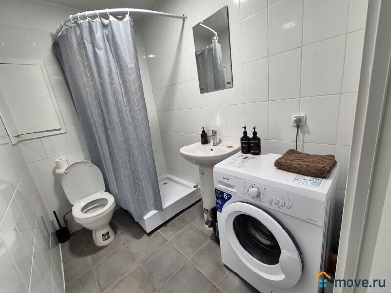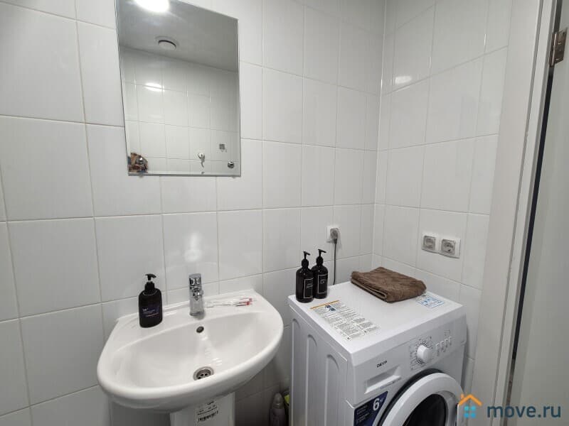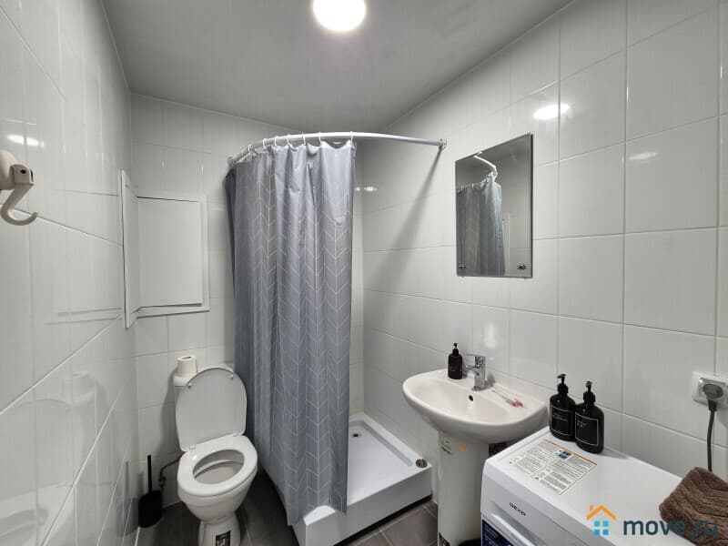 В ванной комнате стиральная машина, туалетные принадлежности, сушилка для белья.