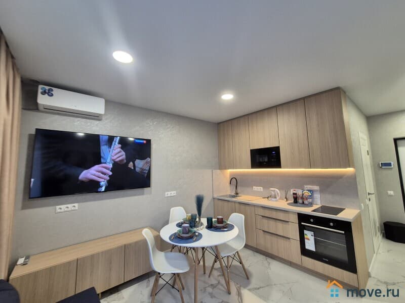 Работает телевизор Smаrt и бесплатный wi-fi. Есть кондиционер. Панорамные окна. Шторы Блэк-аут, видео домофон.