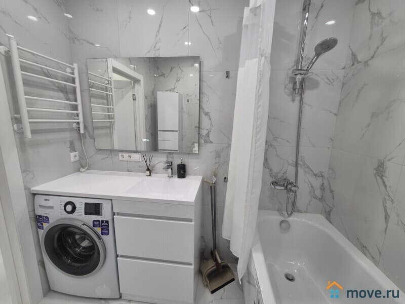 Есть водонагреватель на случай отключения горячей воды. Теплые полы, отопление регулируется.
