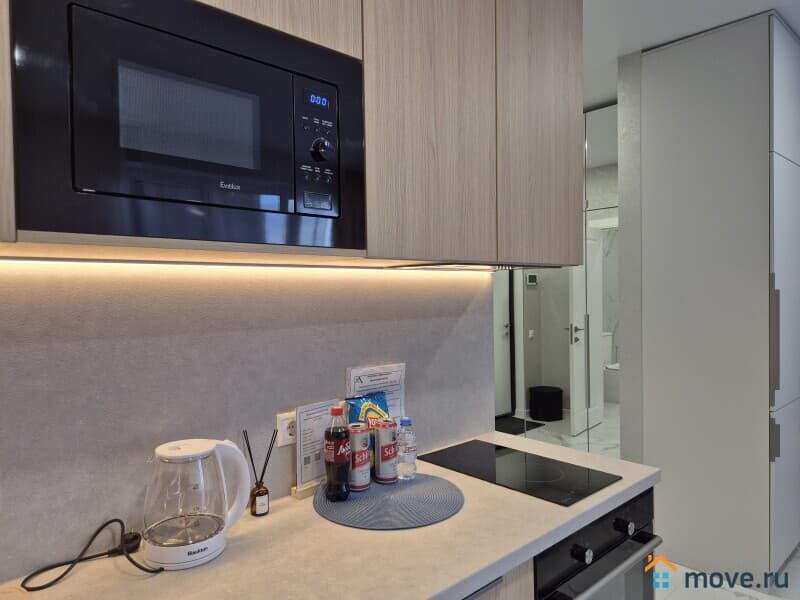 В кухонной зоне электрическая плита, духовка, хорошая посуда, бокалы для вина, холодильник, чайник, микроволновка. Есть мини бар. Гостям бесплатно предоставляется вода, чай, сахар.