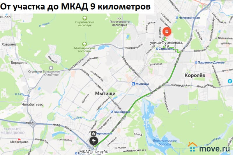 Удобная транспортная доступность: до автобусной остановки 1 км, до ж/д станции Строитель 900 м, до МКАДа 9 км.