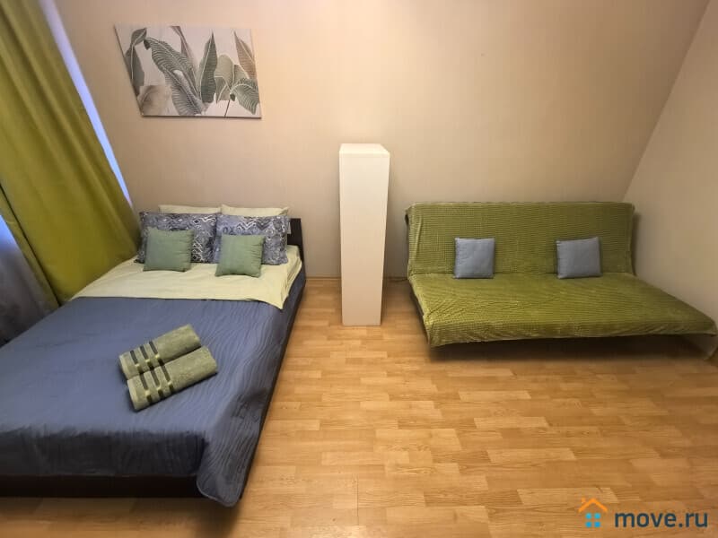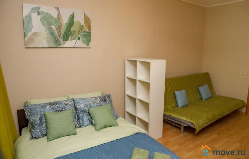 Есть всё необходимое для проживания до 4 гостей: двуспальная кровать с хорошим ортопедическим матрацем, раскладной диван, постельные принадлежности.