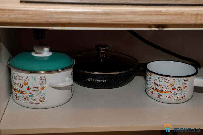 В кухне есть плита, посуда, холодильник, чайник, микроволновка.