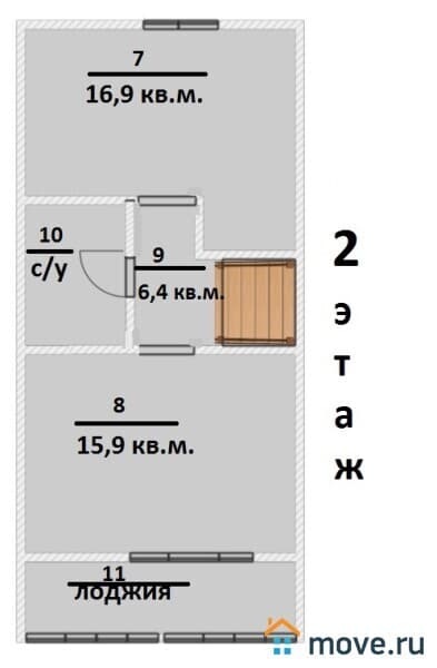 - Второй этаж: две спальни с большими окнами и обустроенной лоджией, санузел.