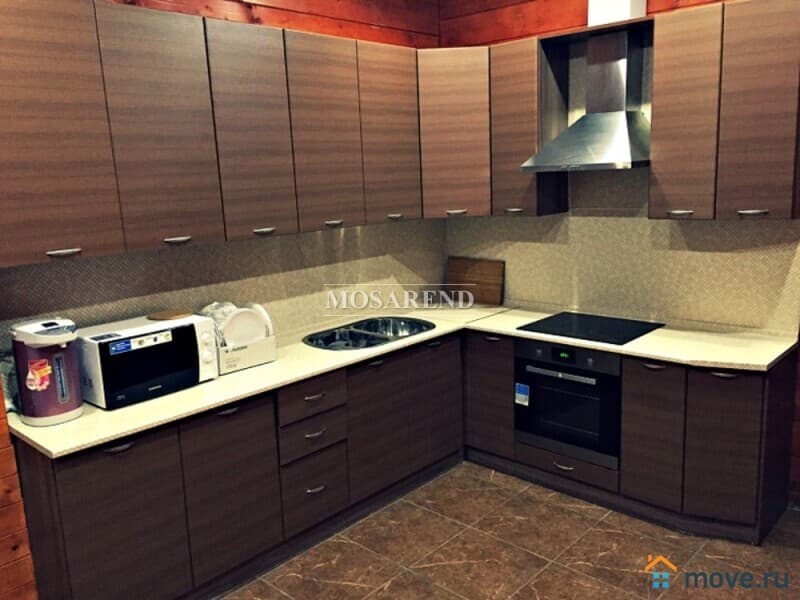 - кухня с современной техникой (холодильник Bosh, индукционная варочная панель, духовой шкаф, микроволновая печь Samsung, термопот на 4 л, посуда на 20 человек)