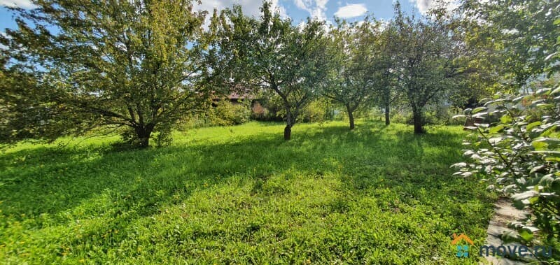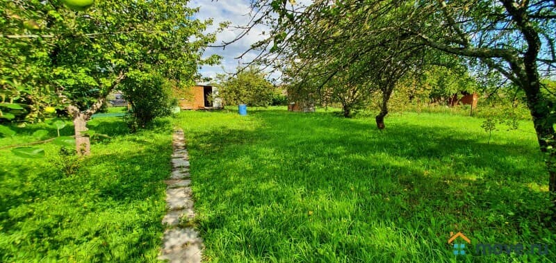Участок ровный, правильной формы, ухоженный, с плодовыми деревьями и ягодными кустарниками, с дорожками и небольшой площадкой из плитки для беседки или качелей. На участке имеется летний душ с водонагревателем, скважина.