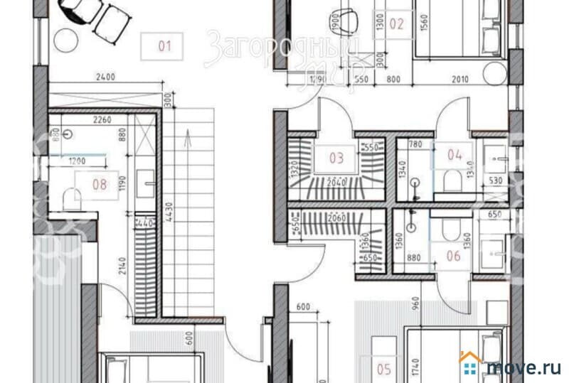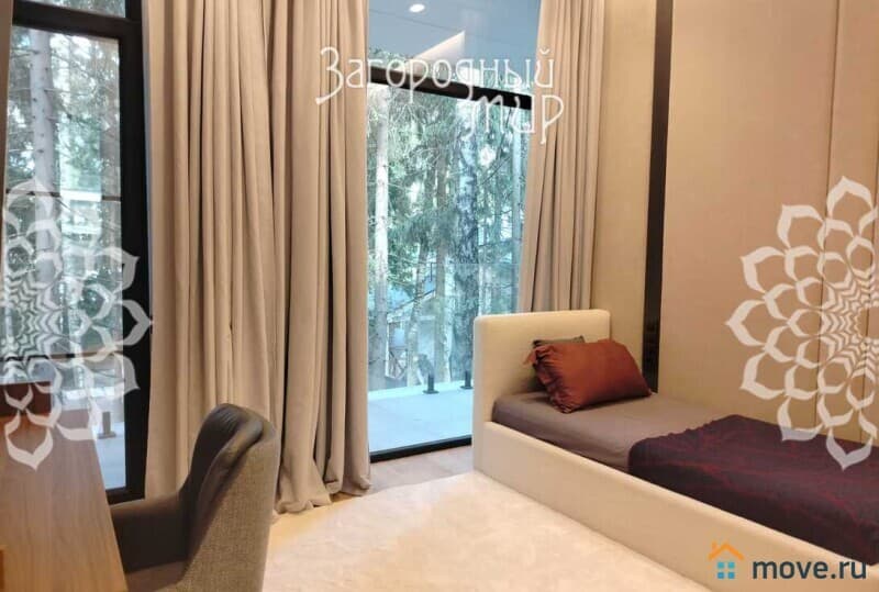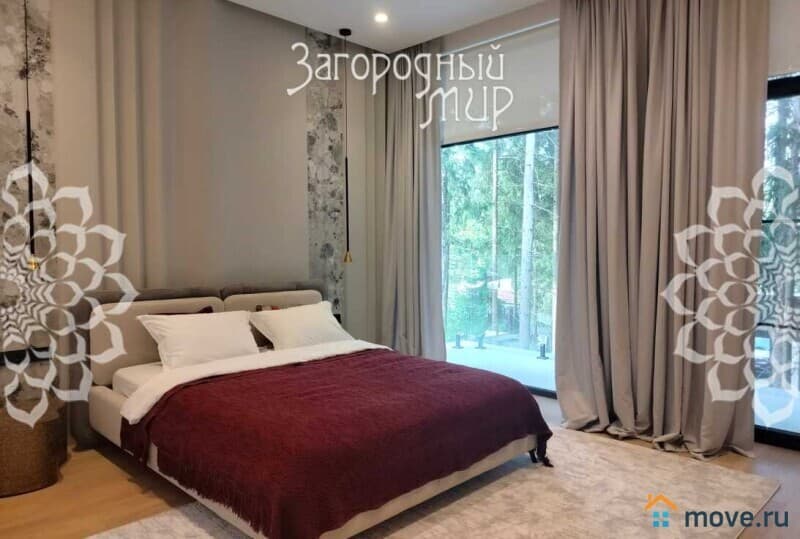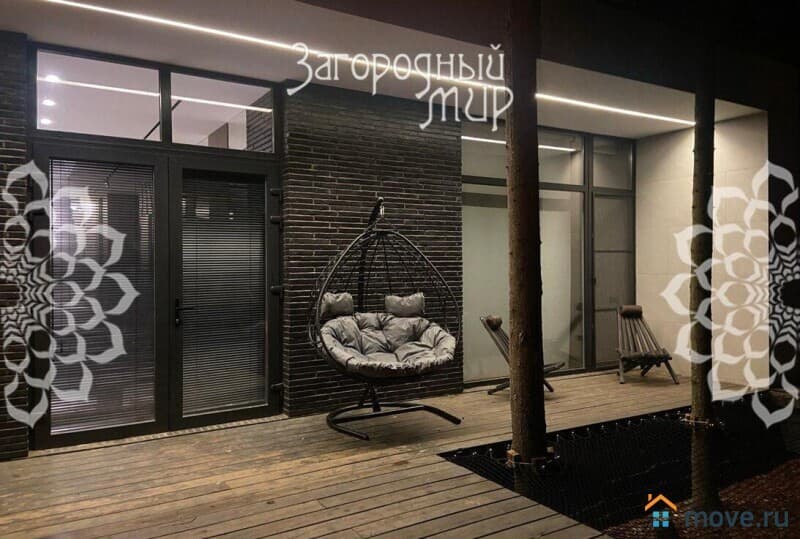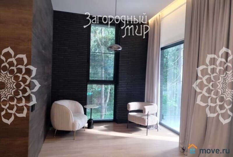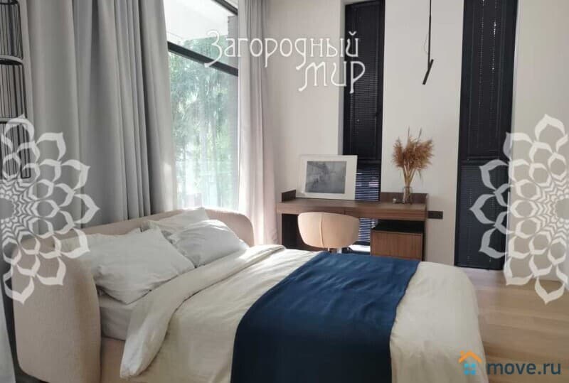 В доме 3 спальни с гардеробными и санузлами, гостиная-столовая, полностью оборудованная кухня, кабинет. Дом полностью меблирован, вся мебель сделана на заказ. Высокие потолки, панорамные окна, выход из каждой комнаты на просторные крытые террасы из натуральной лиственницы, функциональная мебель от потолка до пола, много мест для хранения. Теплые водяные полы по всему дому. Различные сценарии освещения: светильники, светодиодная лента, магнитные треки, подсветка рабочих зон, архитектурная линейная подсветка фасада и террас. Умные ролевые электрошторы и электрокарнизы.