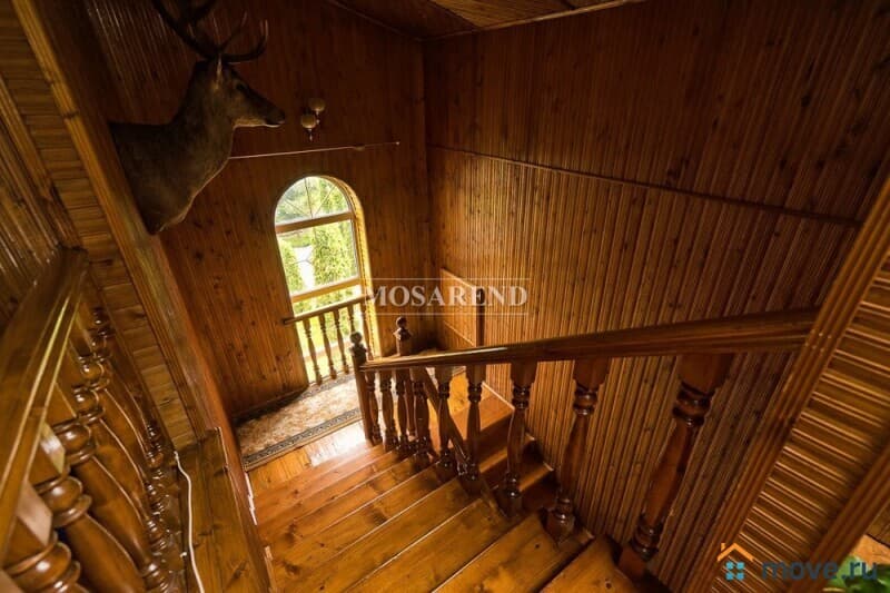 Четырёхуровневый коттедж площадью 370 м2 расположен в 29 км от МКАД по Варшавскому шоссе, рядом с Подольском.